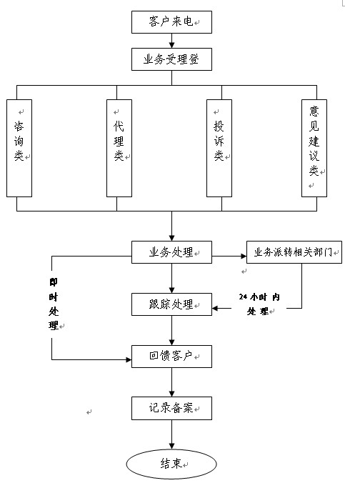 3)業務派轉相關部門:客服專員根據客戶要求,以及受理業務類別,涉及其它部門職能范圍業務,派轉相關部門進行業務處理。